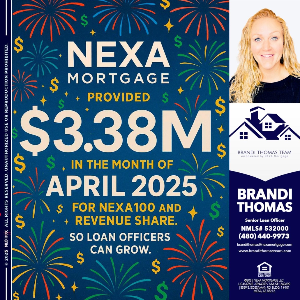 Hi, my name is Brandi Thomas Team. I’m a Loan Officer with NEXA Mortgage LLC., offering personalized mortgage solutions, fast customized quotes, great rates and service with integrity.