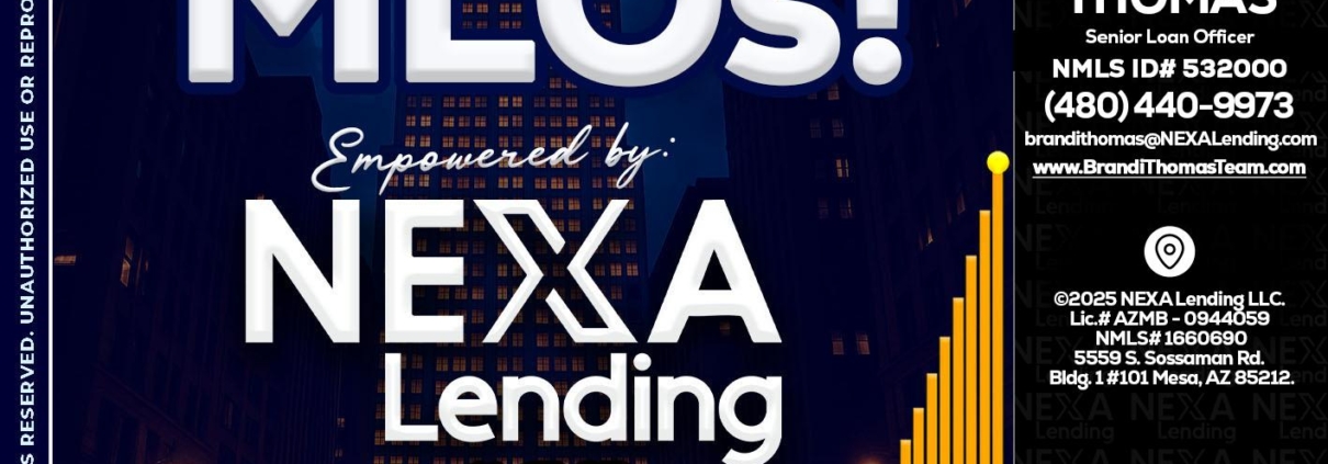 Hi, my name is Brandi Thomas Team. I’m a Loan Officer with NEXA Mortgage LLC., offering personalized mortgage solutions, fast customized quotes, great rates and service with integrity.