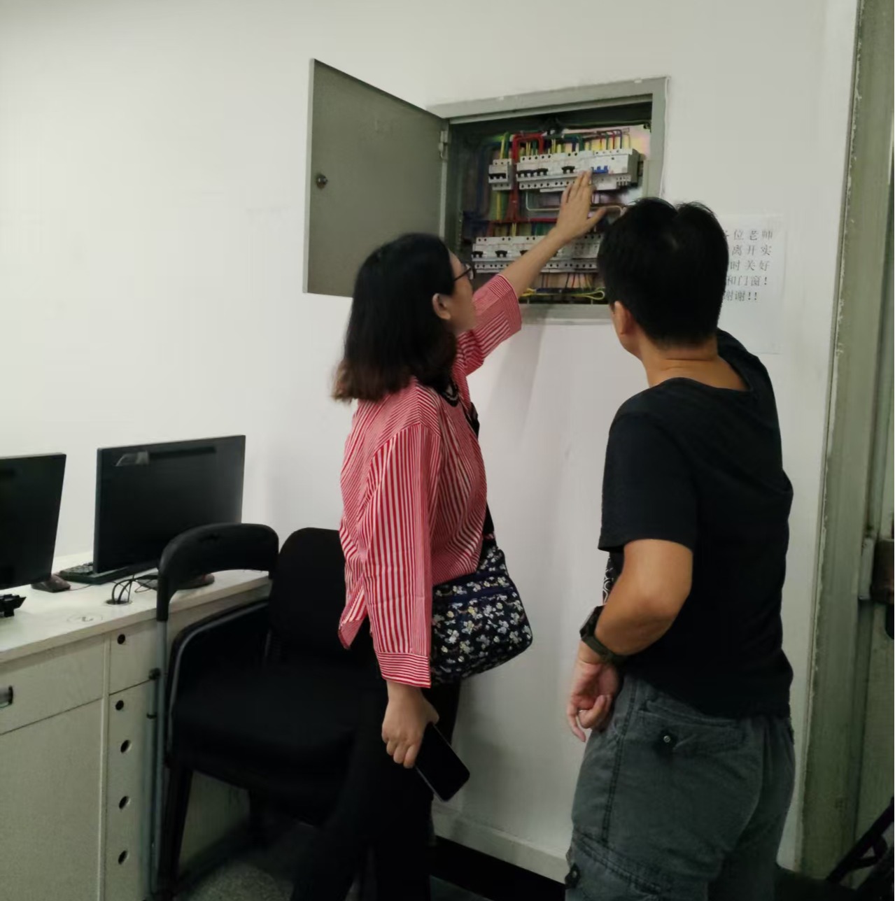 会后,实验室管理员戴为带队对6202、6203及6205实验室开展安全检查,重点排查电源线路与设备使用记录。