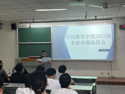 为加强学生对专业的了解,更好的推进大一专业分流工作的开展,betway必威西汉姆联于2023年6月8日下午两点在1201教室召开2022级本科生专业分流动员会。参加此次动员会的有分管学院专业教育的副院长胡建成、信息与计算科学系主任李胜坤、数学与应用数学系主任杨拍、2022级辅导员张秋敏及2022级全体同学。