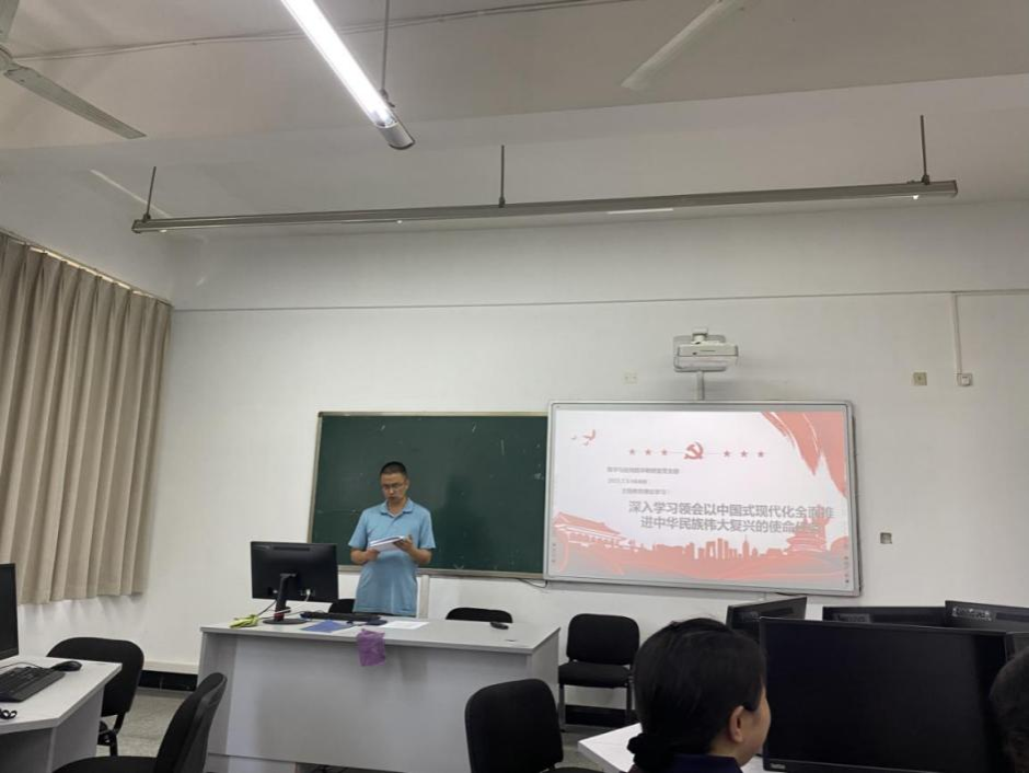 7月5日,数学与应用数学教研室党支部在H6408开展主题教育集中学习,本次会议由支部书记廖开方主持,学习的主题是“深入学习领会以中国式现代化全面推进中华民族伟大复兴的使命任务”,并就《习近平新时代中国特色社会主义思想专题摘编》、《习近平著作选读》的学习进行了分享交流。