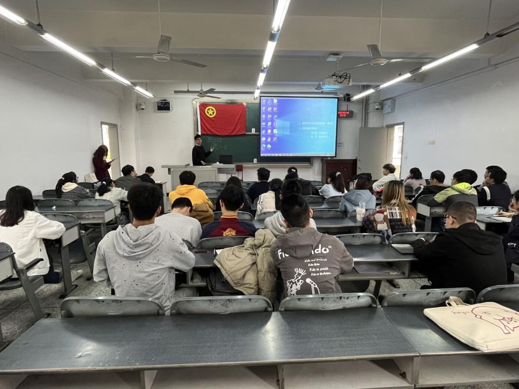首先,学院组织部负责人陈洋就平时团务工作中出现的问题进行提出以及提供对应的解决措施。包括青年大学习、智慧团建、升旗仪式三个方面。为各班团支书讲解了智慧团建工作的细则,帮助各班团支书更好的处理智慧团建工作。并且强调了升旗注意事项。