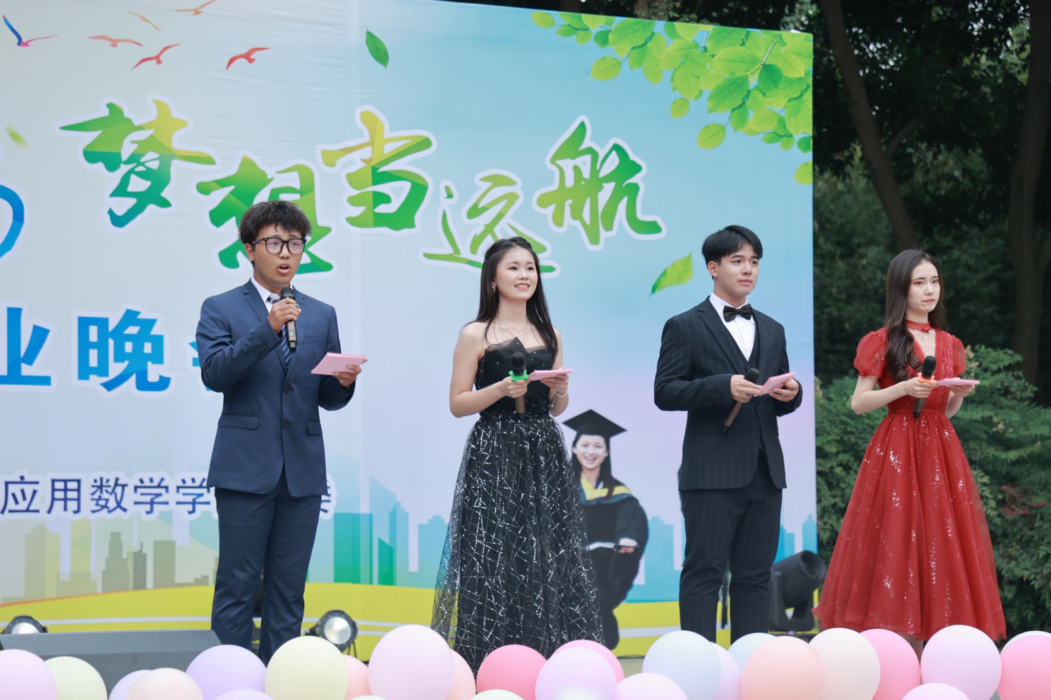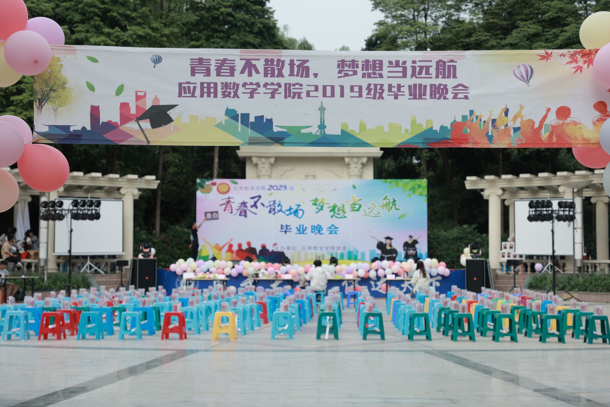 时光荏苒,岁月如梭,漂亮的校园印刻着我们的笑语欢歌;逐梦青春,扬帆远航,跳动的心房满载着往日的多彩时光。世间所有的相遇都是久别的重逢,所有的别离都是为了再次的相遇。四年前怀揣青春之志的追梦少年,如今也即将完成学业走向另一段新的旅程。值此毕业之际,应用数学学院团委于2023年5月26日晚七点半在学校未来广场举办2023届 “青春不散场,梦想当远航”毕业晚会。