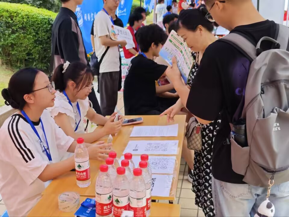 在学校的统一组织,精心安排下,校门口布置了迎新站点,为初来乍到的新生指引方向。即便烈日当空,热浪滚滚,也无法阻挡志愿者们如火的热情与坚定的信念。他们面带微笑,耐心解答新生们的疑问,细心分发学校地图,亲自带领他们踏上前往宿舍、信息楼等地完成报道。在信息楼新生报到处,志愿者们有序组织新生完成签字确认、采集头像、领取学生手册、发放军训服装等报道流程,现场秩序良好,引得家长们连连夸赞。此外,志愿者们还精心设置签名墙,邀请新生及家长签名并合影留念,为他们留下了难忘的入学纪念。