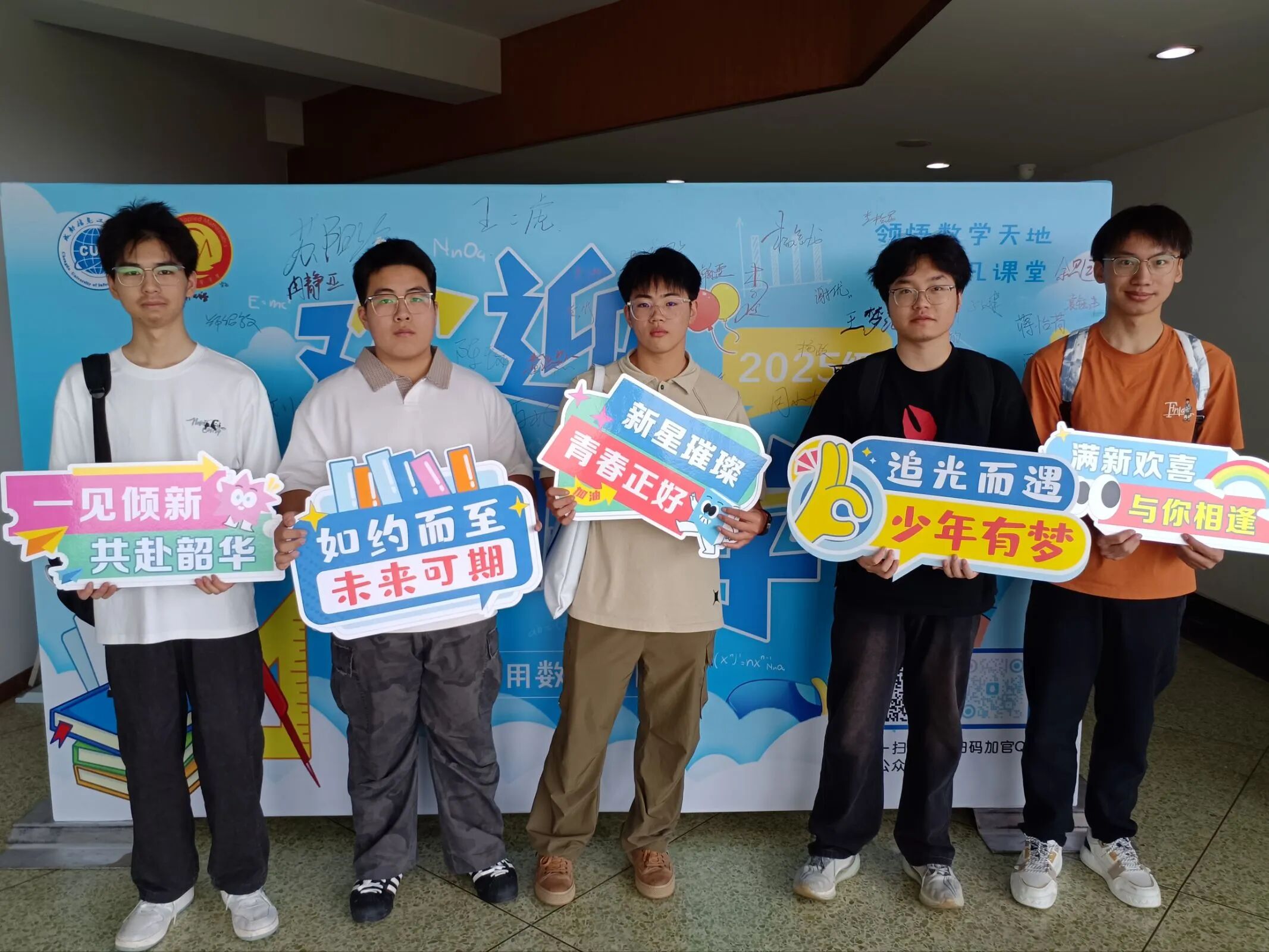 为更好地迎接新生及家长的到来,学院在休息区域为大家准备了茶点、并精心设计了签名墙供大家签名打卡,同学们与家长纷纷合影留念,留下了温馨的校园记忆。希望2025级的新同学们能在数学的无垠世界中扬帆起航,砥砺前行,在大学期间书写属于自己的精彩篇章!