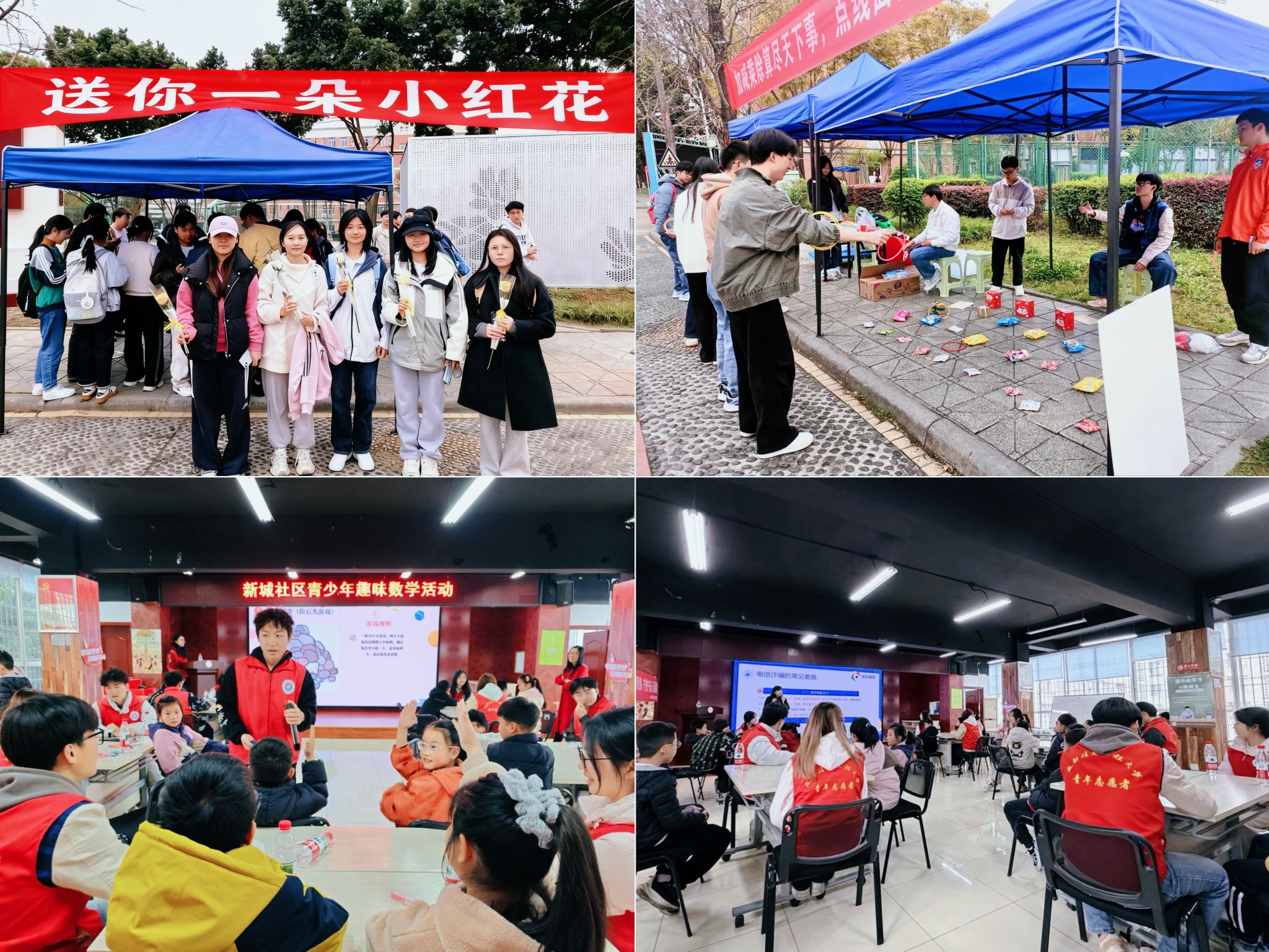 3月14日国际数学日当天,大学生志愿者队伍走进新城社区,开展“π趣横生”趣味数学志愿服务活动。志愿者们通过趣味互动游戏、趣味数学小课堂等形式,向社区青少年普及数学知识、讲解数理原理,以专业素养践行公益初心,让数理之美走出校园、走进社区,让更多青少年感受数学的乐趣与价值。
