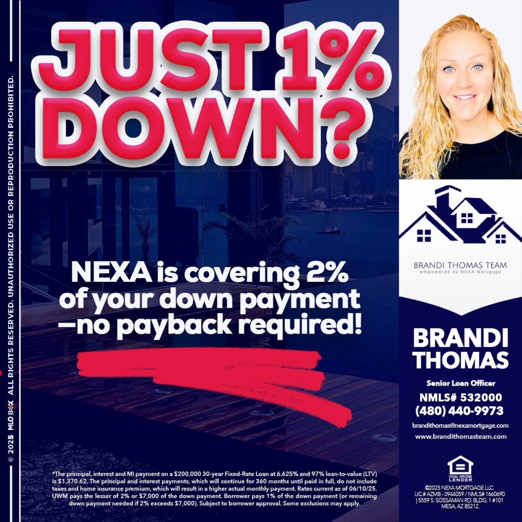Hi, my name is Brandi Thomas Team. I’m a Loan Officer with NEXA Mortgage LLC., offering personalized mortgage solutions, fast customized quotes, great rates and service with integrity.