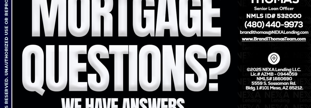 Hi, my name is Brandi Thomas Team. I’m a Loan Officer with NEXA Mortgage LLC., offering personalized mortgage solutions, fast customized quotes, great rates and service with integrity.
