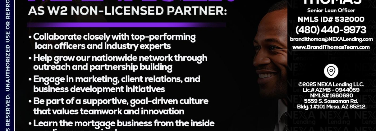 Hi, my name is Brandi Thomas Team. I’m a Loan Officer with NEXA Mortgage LLC., offering personalized mortgage solutions, fast customized quotes, great rates and service with integrity.