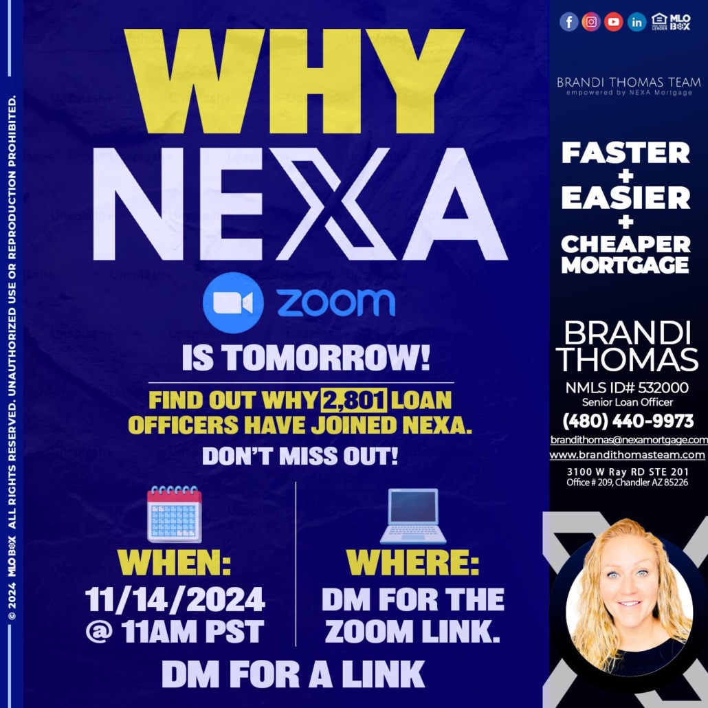 Hi, my name is Brandi Thomas Team. I’m a Loan Officer with NEXA Mortgage LLC., offering personalized mortgage solutions, fast customized quotes, great rates and service with integrity.