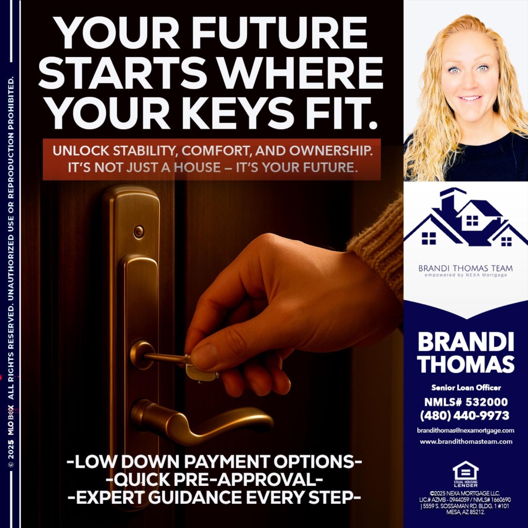Hi, my name is Brandi Thomas Team. I’m a Loan Officer with NEXA Mortgage LLC., offering personalized mortgage solutions, fast customized quotes, great rates and service with integrity.